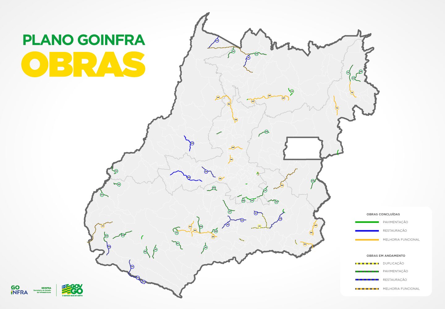- Na região Sudoeste, o Complexo Viário de Rio Verde avança com obras de duplicação, restauração e pavimentação nas rodovias GO-174 e GO-570, incluindo a construção de um viaduto.