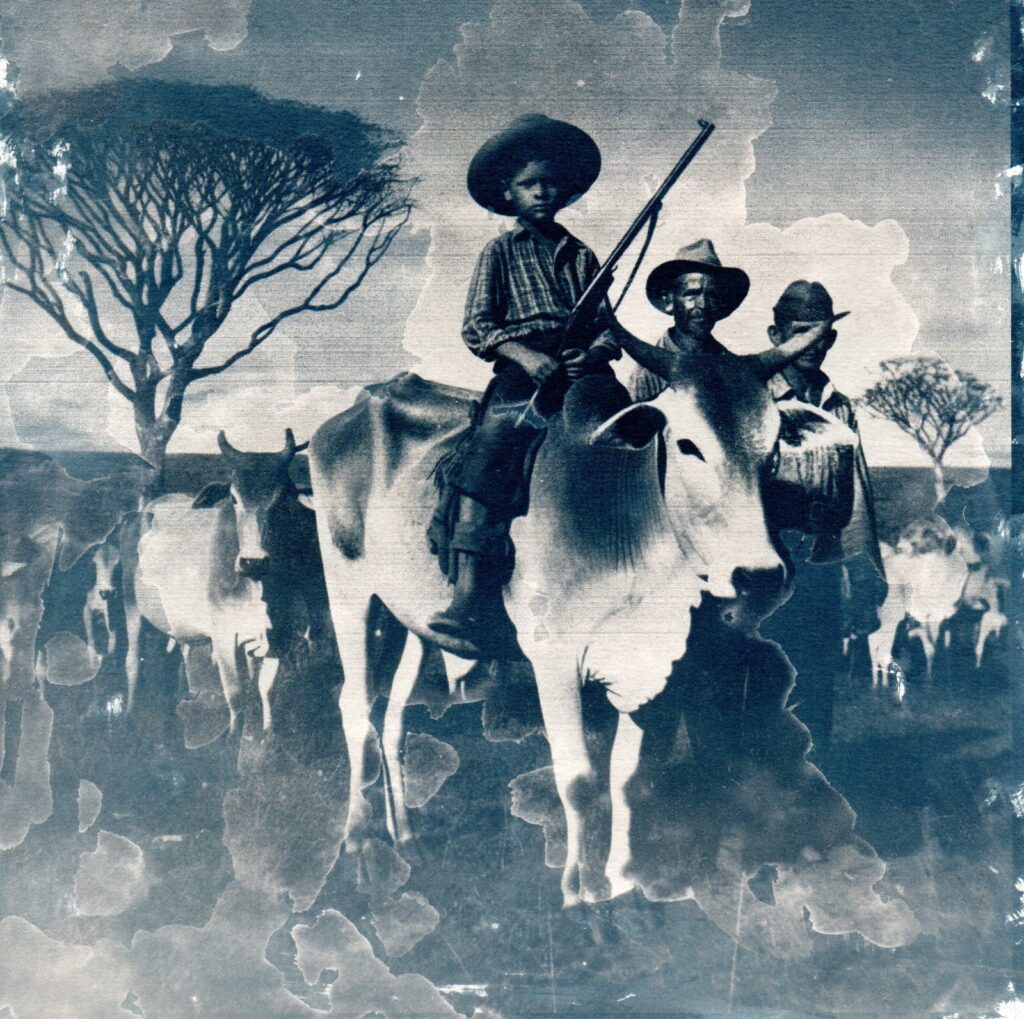 “Sob nossos cascos”, do cineasta e artista visual Rafael de Almeida, tem curadoria de Divino Sobral. A exposição reúne um conjunto inédito de fotografias, vídeos, arquivos manipulados por inteligência artificial e instalações, propondo uma reflexão sobre o boi como entidade simbólica, política e afetiva nos territórios do Brasil Central. A técnica de promptografia é tensionada por processos artesanais, como cianotipia, bordado, aquarela e tinta a óleo, criando uma atmosfera de estranhamento e memória suspensa. Também há vídeos produzidos a partir de suportes digitais e analógicos, como Super 8mm, intensificando a ambiguidade entre documento e ficção.
