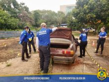 Na parte final da referida etapa do curso, foi realizada uma simulação de atentado a bomba, na qual os alunos-policiais tiveram a oportunidade de processar o local valendo-se dos protocolos e procedimentos aprendidos no decorrer do curso.