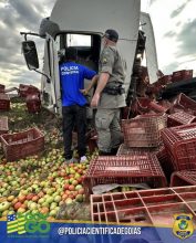 O acidente foi ocasionado pela saída de pista de um caminhão carregado de tomate. Um homem veio a óbito no local.