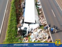 O acidente foi uma saída de pista de um veículo caminhão baú, no sentido do canteiro central onde ficou em repouso.
