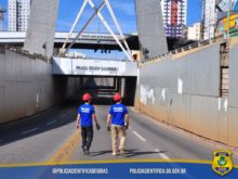 Na manhã desta sexta-feira (15), a Polícia Científica do Estado de Goiás – por meio da Seção de Engenharia Forense (SENG) de seu Instituto de Criminalística (ICLR/SPTC) – procedeu a Perícia Criminal no viaduto João Alves de Queiroz, localizado no cruzamento entre as Avenidas 85 e T-63 em Goiânia. A estrutura foi alvo de incêndio de grandes proporções na madrugada do dia 15.