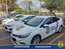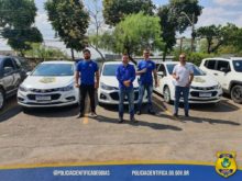 Nesta sexta-feira (30), o Superintendente de Polícia Técnico-Científica do Estado de Goiás, Dr. Marcos Egberto Brasil de Melo, procedeu à entrega de três viaturas GM/Cruze – legado da participação de servidores policiais da Instituição, na SENASP/MJSP e/ou na Força Nacional de Segurança Pública (FNSP) – para as seguintes Coordenações Regionais de Polícia; para atuação em atividades operacionais de Perícia Criminal (atendimentos a Locais de Crime e Reproduções Simuladas): 1ªCRPTC–Aparecida, 10ªCRPTC–Anápolis e 14ªCRPTC–Luziânia.
