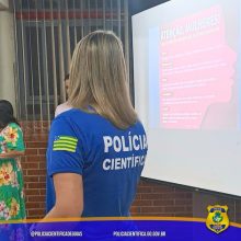 compareceu à Universidade Estadual de Goiás, ministrar uma Palestra sobre a “Operação Átria”, operação da Secretaria de Segurança Pública com o tema do combate à Violência contra a Mulher e o papel crucial da polícia técnico científica.