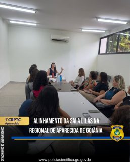 📌 O encontro teve como objetivo consolidar as orientações técnicas e operacionais repassadas desde o início das atividades da Sala Lilás na unidade, reforçadas pelos treinamentos realizados na Assembleia Legislativa do Estado de Goiás e pelo alinhamento junto aos médicos legistas da regional.