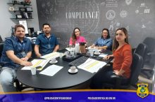 Nesta terça-feira (19), a Polícia Científica do Estado de Goiás, representada pela Coordenadora Geral de Regionais da Polícia Técnico-Científica, Perita Criminal Núbia Vieira; juntamente com o Auxiliar de Autópsia Gustavo Sulek (representando o Gerente do IMLAT), o Gerente de Criminalística, Perito Criminal Fabrício Oda; estiveram presentes no Escritório Permanente de Compliance Público da SSP (EPCP-SSP), para reunião de alinhamento dos novos riscos a serem monitorados.
