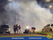 Na simulação houve disparos de arma de fogo, bombas e fogo, tudo promovido pelos criminosos na frente do Banco do Brasil, na praça da República, centro da cidade de Itumbiara.*