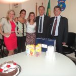 Já virou tradição. Uma vez por mês os servidores do Gabinete da Delegada Geral da Polícia Civil reúnem-se para comemorar a data alusiva ao aniversário de cada um. Para comemorar a data dos que aniversariaram no mês de julho, o encontro aconteceu na última quinta-feira, 26, no final do expediante para comemorar o aniversário da Escrivã de Polícia, Camila Nunes de Almeida (aniversário no dia 10), do Assessor José Pascoal da Silva Júniorv(aniversário no dia 28) e do Delegado Geral Adjunto da Polícia Civil, João Carlos Gorski (aniversário no dia 26). A Delegada Geral Adriana Accorsi parabenizou cada um deles, ressaltando o quanto é bom fazer parte da equipe de trabalho que a assessora diretamente, enaltecendo as qualidades de cada colega aniversariante.