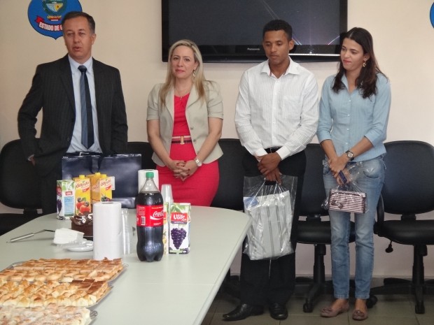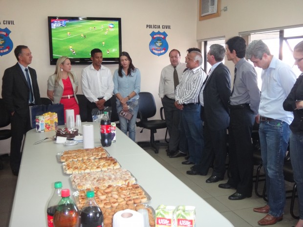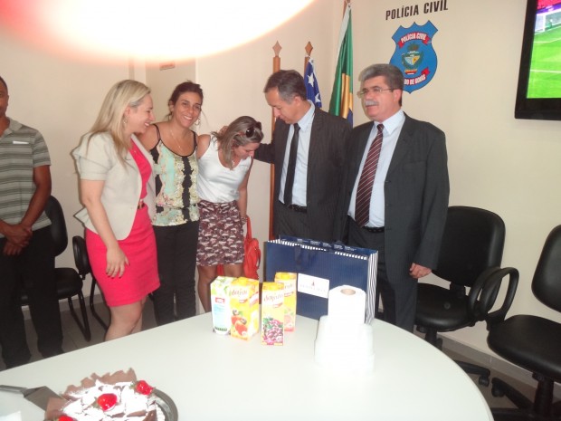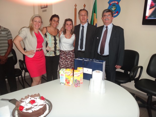 Já virou tradição. Uma vez por mês os servidores do Gabinete da Delegada Geral da Polícia Civil reúnem-se para comemorar a data alusiva ao aniversário de cada um. Para comemorar a data dos que aniversariaram no mês de julho, o encontro aconteceu na última quinta-feira, 26, no final do expediante para comemorar o aniversário da Escrivã de Polícia, Camila Nunes de Almeida (aniversário no dia 10), do Assessor José Pascoal da Silva Júniorv(aniversário no dia 28) e do Delegado Geral Adjunto da Polícia Civil, João Carlos Gorski (aniversário no dia 26). A Delegada Geral Adriana Accorsi parabenizou cada um deles, ressaltando o quanto é bom fazer parte da equipe de trabalho que a assessora diretamente, enaltecendo as qualidades de cada colega aniversariante.