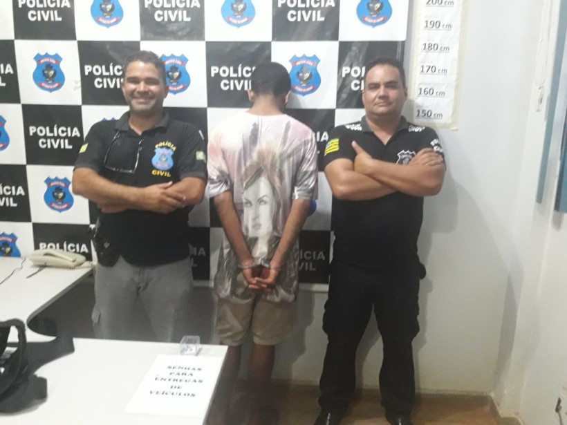 Acionados pela vítima momentos após o ocorrido, a equipe de policiais civis realizou buscas próximas ao local dos fatos, até localizar e prender em flagrante o autor dos delitos.