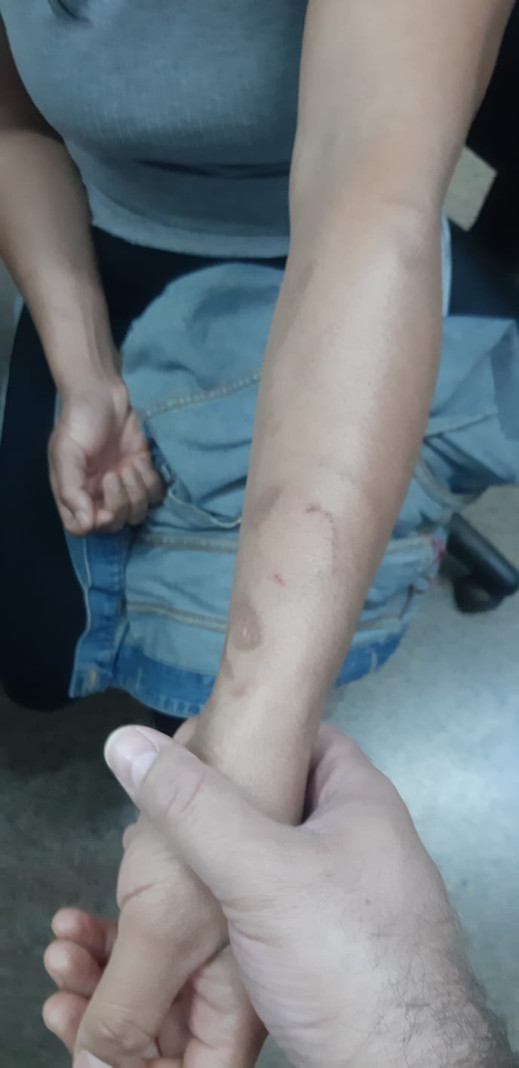Em entrevista preliminar, a mulher informou que, em uma das agressões no passado, seu algoz chegou a arrancar uma de suas unhas e em outra precisou de atendimento médico em Brasília. A vítima informou que em todas as outras ocasiões mentia ou omitia aos profissionais de saúde que lhe atendiam o que havia gerado as lesões. Ela alegava que as lesões se deviam a uma queda ou a um acidente qualquer. Porém, dada a frequência com que ocorriam as agressões, muitas delas na presença do filho de 1 ano de idade que possui com o agressor, entendeu que deveria procurar a polícia e relatar os fatos.