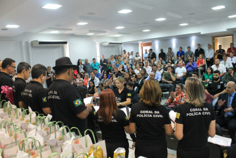 Também foi feita uma homenagem a policiais civis que se aposentaram recentemente. Por fim, a Coordenação de Proteção à Saúde do Servidor Policial Civil (CPSS-PC) realizou o sorteio e entrega de brindes aos policiais civis presentes ao evento.