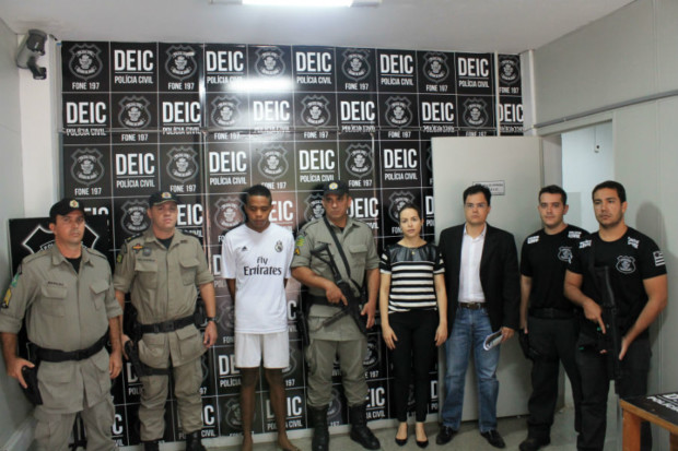 A Delegacia Estadual de Investigações Criminais (Deic) realizou a apresentação de Carlos Carmesino Santos de Lima, 18 anos, investigado como autor do latrocínio cometido contra Antônio Paulo Oliveira da Silva, 32 anos, a 8 de março. Preso por policiais militares em Senador Canedo, Região Metropolitana de Goiânia, no sábado (25), Carlos foi apresentado na manhã de terça-feira (28).