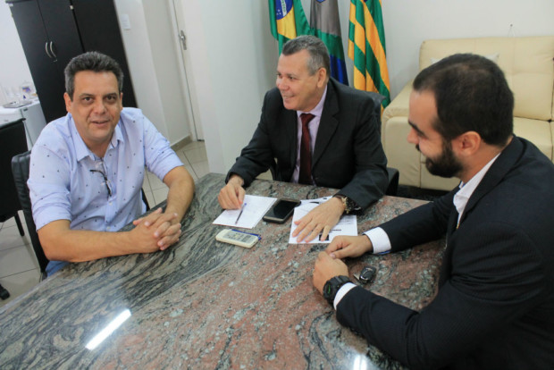 O delegado-geral da Polícia Civil de Goiás, Álvaro Cássio dos Santos, esteve reunido com o prefeito de Ceres, Rafael Melo (à esquerda), e com o titular da Delegacia Distrital de Polícia (DDP) do município, delegado Mateus Melo (à direita), na quinta-feira (27). Na reunião, foram tratados assuntos atinentes à celebração de novas parcerias junto ao Poder Executivo local, bem como o incremento das ações coordenadas já existentes, com vistas ao reforço nas ações no setor de Segurança Pública na cidade. Ceres é sede da 16ª Delegacia Regional de Polícia Civil (DRPC).