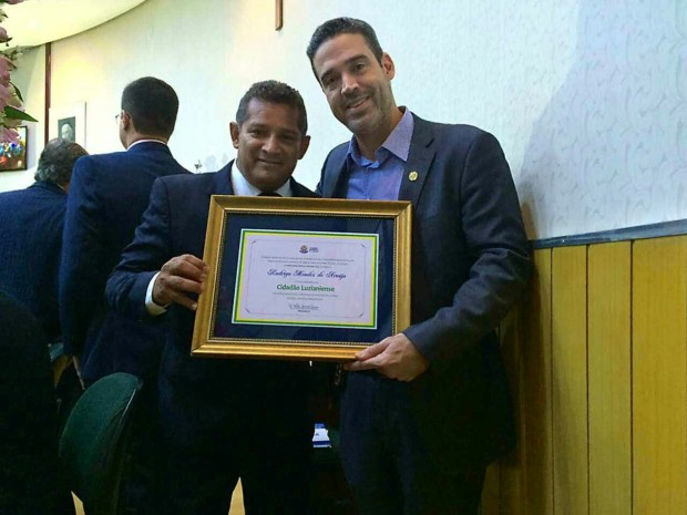 O delegado titular da 5ª Delegacia Regional de Polícia Civil (DRPC), Rodrigo Mendes, recebeu o título de cidadão luzianense na quinta-feira (08). Luziânia é sede da 5ª DRPC. Ele recebeu a honraria das mãos do vereador Chico da Antártica.