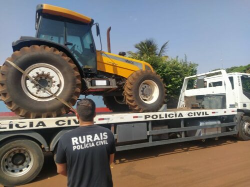 Após a realização de diligências e deferimento de ordem judicial, a equipe policial cumpriu mandado de busca e apreensão em propriedade rural, local em que estava um maquinário agrícola objeto de crime. Foi preso em flagrante, ainda, um homem.