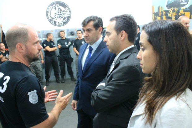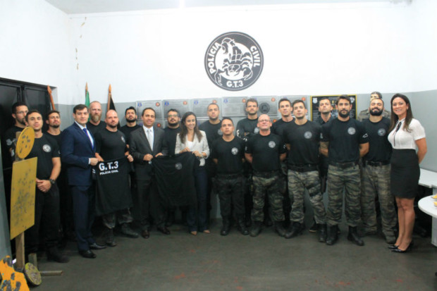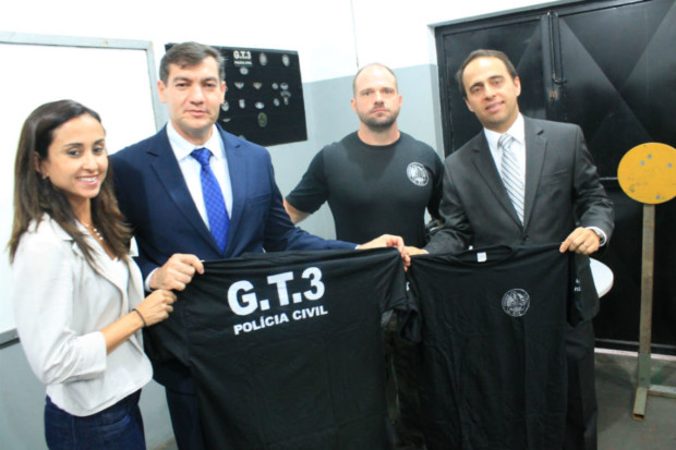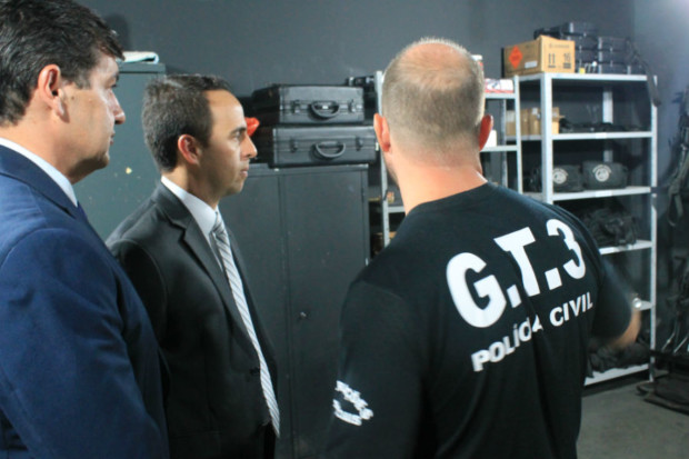 Realizaram a visita o delegado geral adjunto, Marcelo Aires, acompanhado pelo gerente de Gestão e Finanças da PCGO, delegado Eraldo José Augusco, além da coordenadora de assessorias da Superintendência de Polícia Judiciária (SPJ), delegada Tatyane Cruvinel. Eles foram apresentados às instalações internas da sede do GT-3 pelo delegado integrante do grupo tático, André Ganga.