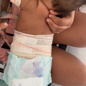Um dos rojões caiu e explodiu no interior do cesto, causando diversos ferimentos e queimaduras na criança. O outro caiu e explodiu fora do cesto, mas também gerou perigo de vida ao bebê. A mãe da criança, visando defender a vida da filha, sacou uma faca e golpeou nas costas do autor, causando lesões corporais leves e fazendo cessar a injusta agressão contra o bebê. Em razão dos fatos, a prisão em flagrante foi homologada pela autoridade policial e o autor encontra-se preso. Após os procedimentos de praxe, o procedimento será encaminhado ao Poder Judiciário.