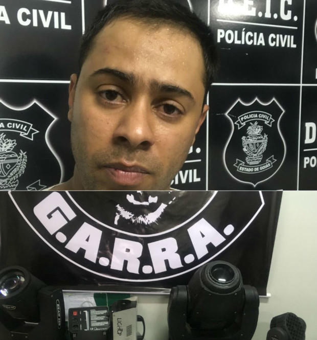 O Grupo de Repressão a Roubos da Delegacia Estadual de Investigações Criminais (Garra-Deic) prendeu em flagrante Regis Wendel da Silva na terça-feira (21) por receptação Dolosa. O autuado foi surpreendido na posse de alguns dos equipamentos usados para iluminação de eventos furtados no dia 22 de outubro, no setor Vila Rosa. Os equipamentos possuem grande valor financeiro. Sua recuperação foi muito relevante para a vítima.