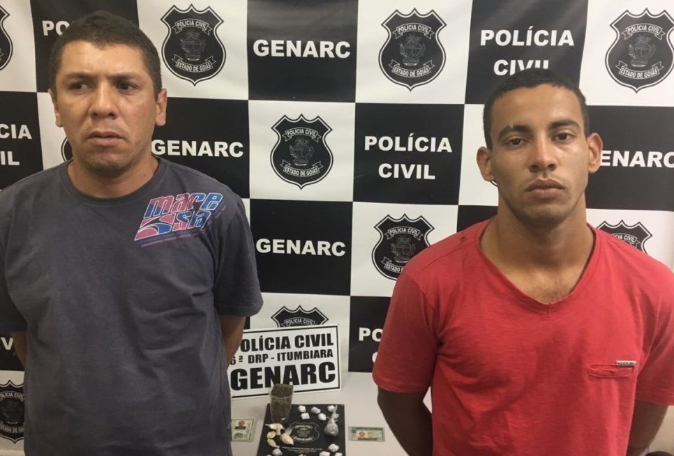 O Grupo Especial de Repressão a Narcóticos (Genarc) de Itumbiara, coordenado pelo delegado Rogério Moreira, prendeu em flagrante delito Elton Jonata Santos, 35 anos, e Welinton Geovane de Souza Reinaldo, 18 anos, por tráfico de drogas e associação ao tráfico na tarde desta quinta-feira (23) em Cachoeira Dourada.