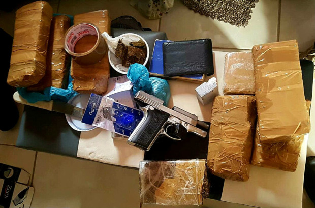 Os outros dois indivíduos, que permaneceram dentro do imóvel, visualizaram o procedimento da polícia civil, oportunidade em que um deles arremessou uma mochila pela janela. Ao abrirem-na, os policiais perceberam que, no seu interior, havia aproximadamente dois quilos de maconha e uma pistola calibre 380 municiada.