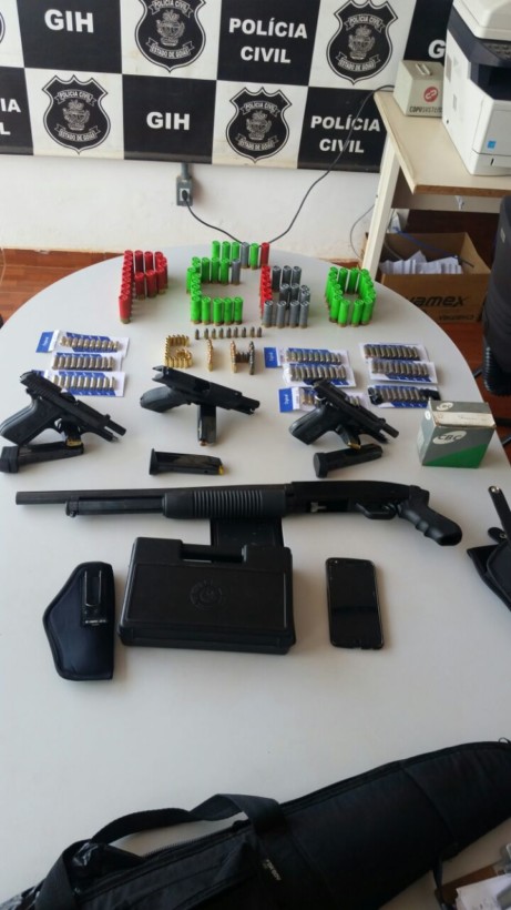 O Grupo de Investigação de Homicídios de Luziânia prendeu em flagrante Juliano Dante da Silva, de 25 anos, por manter em depósito 02 pistolas calibre 380, 01 pistola calibre 9mm, 01 espingarda calibre 12, bem como 241 munições de diversos calibres e três carregadores de pistola.