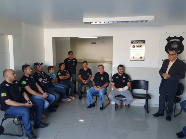 A homenagem é referente aos serviços realizados pela Especializada no último mês de março: “Infelizmente, por questões de outros compromissos, agenda e férias, não conseguimos fazer a entrega antes, mas hoje venho cumprimentá-los e agradecer pelo excelente trabalho que esta equipe vem desempenhando”, destacou o delegado-geral.