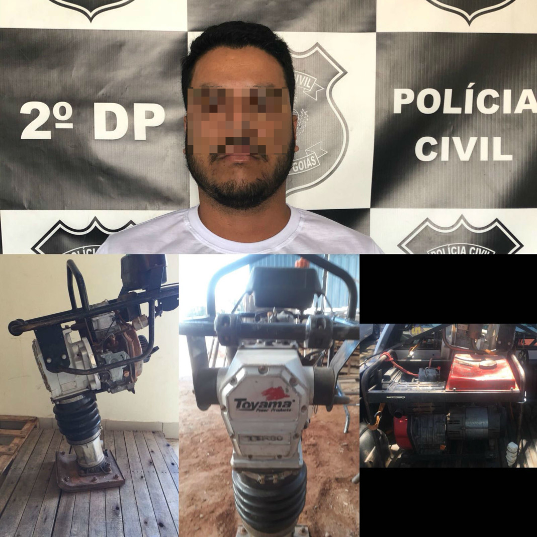 A Polícia Civil do Estado de Goiás, por meio da 2ª DP de Aparecida de Goiânia, prendeu em flagrante, no dia 21 de agosto, Edson de Sá Ribeiro Junior, pelo crime de receptação. O homem foi encontrado depois que, noticiados a respeito de furto de um compactador e de um gerador, os policiais se passaram por compradores e negociaram o compactador da vítima pelo valor de R$ 5 mil com um homem chamado Jorge Joaquim da Silva.