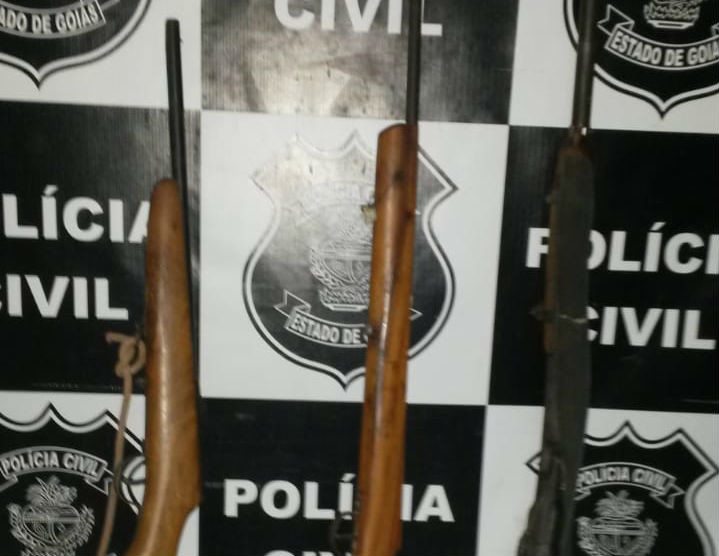 Policiais Civis de Campos Belos prenderam em flagrante, no dia 20 de agosto, Raimundo Soares, com o qual foram encontradas três armas de fogo, as quais estariam sendo utilizadas para ameaçar de morte sua companheira. O armamento foi encontrado durante atuação de campo contra violência doméstica. Na delegacia, a vítima de violência doméstica não ofertou representação pelo crime de ameaça, sendo o conduzido autuado apenas pelo crime de posse de arma de fogo.