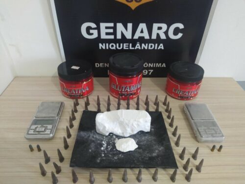 Na ocasião, os suspeitos vinham em uma motocicleta e, ao avistar a equipe do GENARC, “dispensaram” um volume que traziam consigo na estrada, o que foi visualizado pelos investigadores. Ao checar o volume, verificou-se que se tratava de um maço de cigarros, contendo, em seu interior, “pinos” de cocaína prontos para comercialização. Ao identificar o abordado, constatou-se que era o mesmo indivíduo que já vinha sendo monitorado pela equipe.