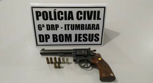 A Polícia Civil do Estado de Goiás, por intermédio da equipe policial da Delegacia de Bom Jesus, prendeu em flagrante, no dia 18 de maio, um homem por porte ilegal de arma de fogo. O indivíduo foi abordado em seu caminhão e com ele foram localizadas duas munições calibre .38. Após esse fato, a equipe policial foi até a residência dele, onde foi localizado um revólver calibre .38 carregado com seis munições, dentro do guarda-roupa. Diante disso, ele foi preso em flagrante pelo crime de porte ilegal de arma de fogo e encaminhado a Delegacia da Polícia Civil.