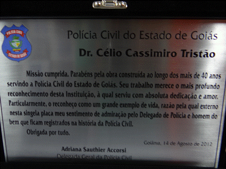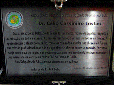 Homenagem ao Delegado de Polícia Célio Cassimiro Tristão Publicado em 14 agosto 2012 Última Atualização em 4 de fevereiro de 2022 Categoria Galeria de fotos