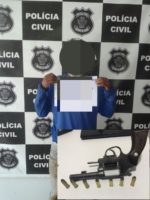 O proprietário Valdenir Teixeira Guimarães não foi encontrado em casa no momento da busca e os policias diligenciaram até encontrá-lo e prendê-lo em flagrante. Valdenir foi autuado pela prática do crime de posse ilegal de arma de fogo de uso permitido.