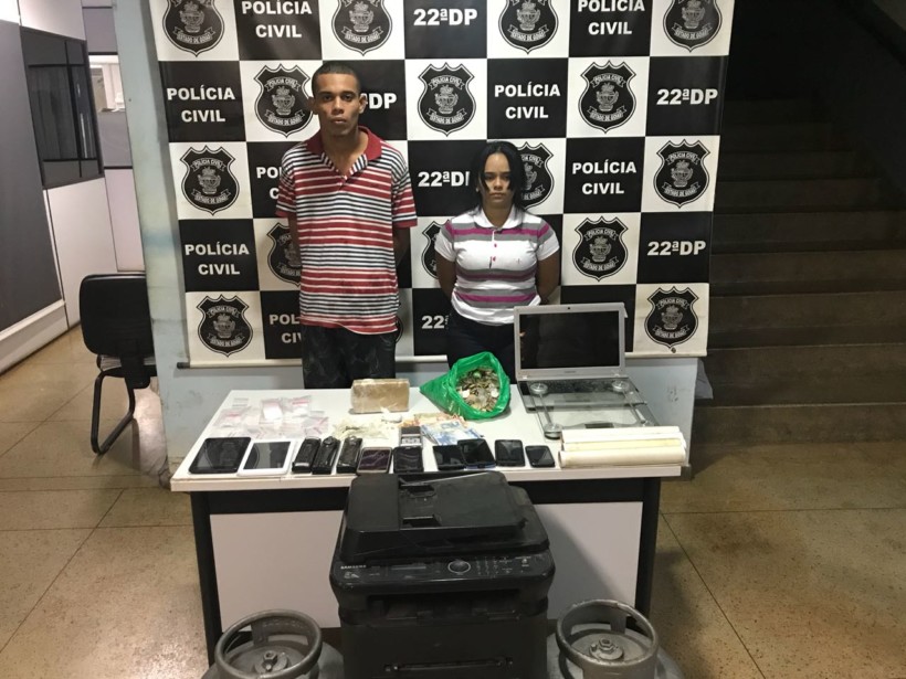 Duas pessoas foram presas na noite desta segunda-feira (28/05) por policiais civis da 22ª DP de Goiânia, após serem surpreendidos com drogas no Jardim Primavera. A ação, coordenada pelo delegado Humberto Teófilo, flagrou com os autuados aproximadamente meio quilo de maconha, uma porção grande de crack, uma balança de precisão, além de seis aparelhos de telefones celulares, dois tablets, três frentes de aparelho de som veicular, um notebook, três botijões de gás e mil reais em dinheiro.