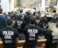 O delegado-geral da Polícia Civil de Goiás, Álvaro Cássio dos Santos, o delegado supervisor e vereador Eduardo Prado e a delegada Renata Freitas foram recebidos no altar. Em seu discurso, Álvaro Cássio enalteceu a importância da fé religiosa para os policiais civis, tendo em vista as características da profissão. “Estamos aqui hoje para agradecer a Deus pelo fato de podermos exercer nossa profissão, de muitos riscos, com dignidade e integridade das nossas próprias vidas e de nossos familiares”, salientou.