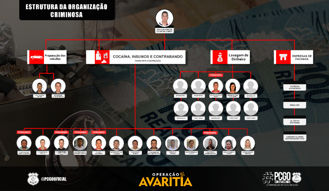 A 20 de junho, um depósito de drogas e insumos foi encontrado pelo 22ª Delegacia Distrital de Polícia (DDP) de Goiânia. Uma semana depois, apreenderam-se 30 quilos de cocaína praticamente pura e 470 quilos de insumos em uma perseguição policial na Rodovia BR-060, na altura de Guapó. As várias apreensões demonstram a potencialidade da organização e a periculosidade de seus membros, que se valiam de diversos laranjas para dar aparência lícita a valores e bens adquiridos com o dinheiro do crime.