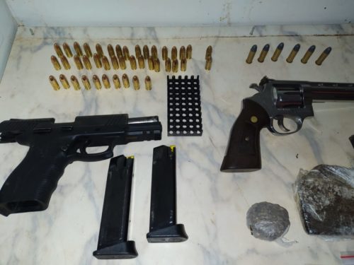 Os policiais civis deram cumprimento a mandados de busca e apreensão em diversos endereços utilizados como esconderijo pelo grupo. Em uma das residências, foram apreendidas duas armas de fogo, sendo uma pistola calibre 9mm com 42 munições e um revólver calibre 38 com 6 munições do mesmo calibre. Também foram apreendidos um colete balístico, 3 motocicletas utilizadas em práticas criminosas, diversas porções de drogas e aparelhos celulares.