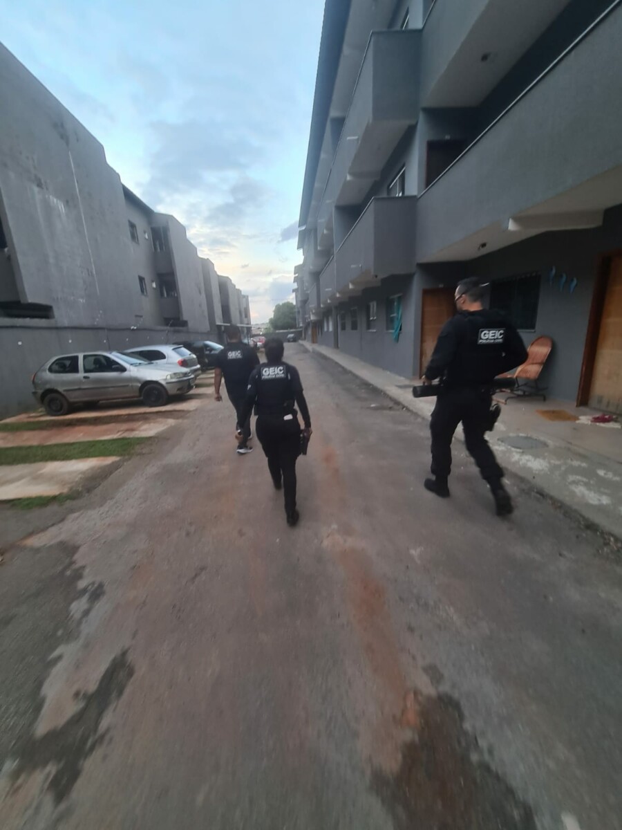 Neste sábado (28), a 17ª Delegacia Regional de Polícia – por intermédio do GEIC, GIH, GENARC e 2ª DDP, todas de Águas Lindas – deu cumprimento, em Águas Lindas, a um mandado de prisão preventiva e dois mandados de buscas domiciliares contra indivíduos suspeitos de, pelo menos, quatro trocas de máquinas de cobrança de estabelecimentos comerciais da cidade, entre julho e dezembro de 2024.