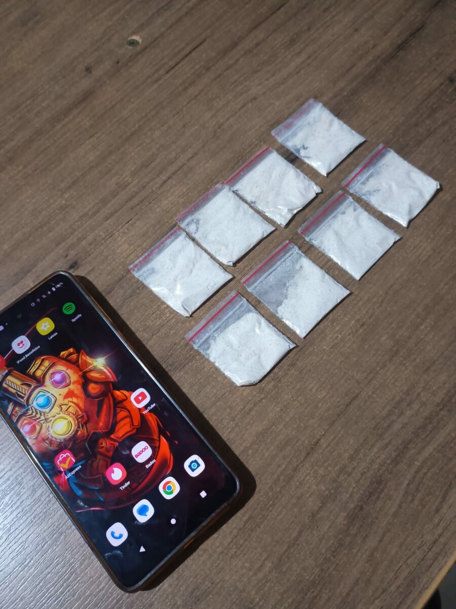 Durante as diligências, foram apreendidas porções de drogas, celulares, sendo que um dos investigados (de 29 anos), além de preso por força de mandado de prisão, foi individualmente autuado em flagrante delito pelo crime de tráfico de drogas, eis que ele estava armazenando, em sua residência, diversas porções de substâncias entorpecentes (cocaína) destinadas à mercancia. Um dos investigados (de 37 anos), ostenta antecedentes criminais por homicídio doloso, tráfico de drogas, roubo, receptação, furto e posse ilegal de arma de fogo e já cumpriu vários anos de pena no sistema prisional de Goiás.