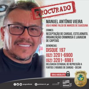 A Polícia Civil de Goiás, através da Delegacia Estadual de Repressão a Furtos e Roubos de Cargas (Decar), após doze meses de intensas investigações, prendeu, em razão de mandados de prisões preventivas, Renato Renner Marques Ferreira, 42 anos, e Pablo Lima Estrela, 40 anos. Eles são membros de uma associação criminosa que, em conjunto com o foragido Manoel Antônio Vieira de Lima, deram prejuízos milionários em face de várias vítimas de subtrações de cargas e outras fraudes. As prisões se deram em meio à Operação Fatura Final.