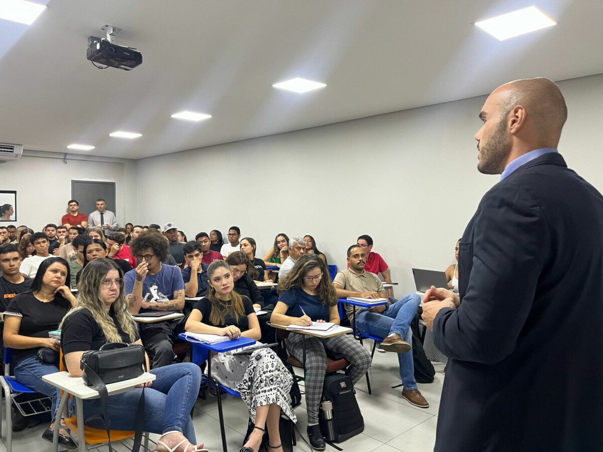 A Polícia Civil, por meio da Delegacia Especializada no Atendimento à Mulher (Deam) de Jataí, realizou ontem (11) palestra na Faculdade FGI (Faculdade de Gestão e Inovação). O evento foi destinado a alunos do 1º, 4º e 6º períodos e teve como principal objetivo abordar os procedimentos adotados na Deam. A palestra foi ministrada pelo delegado Thiago Saad, titular da Deam de Jataí.
