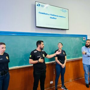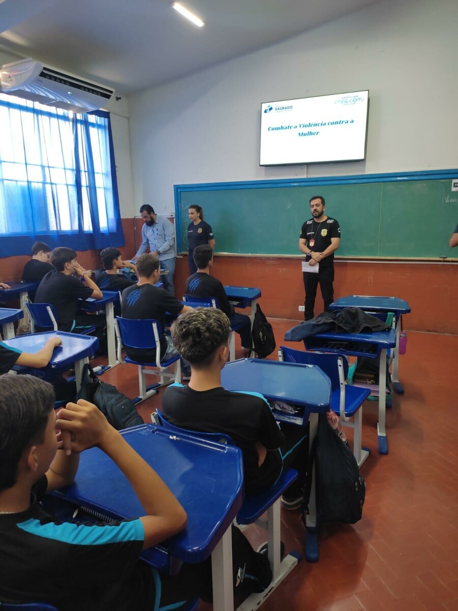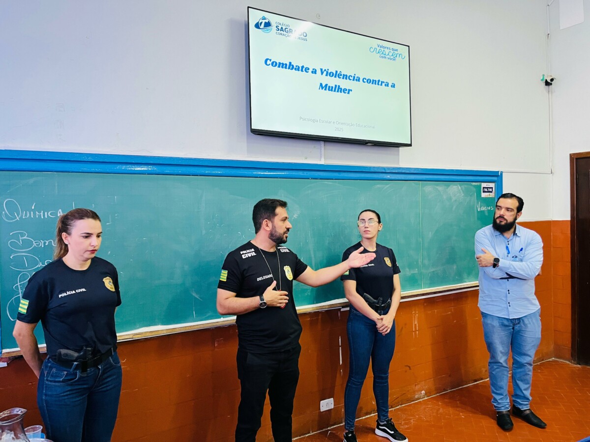 A Polícia Civil, por meio da equipe da Delegacia de Polícia de Pires do Rio/9ª DRP, ministrou hoje (06), dentro da Operação Mulher + Segura, palestra sobre Violência de Gênero Contra Mulheres para alunos do Colégio Sagrado Coração de Jesus. A palestra objetivou esclarecer o corpo docente sobre as causas e consequências da violência contra a mulher, possibilitando aos jovens, enquanto membros da comunidade, sensibilizar-se para o combate e eliminação de todos os tipos de violência de gênero.