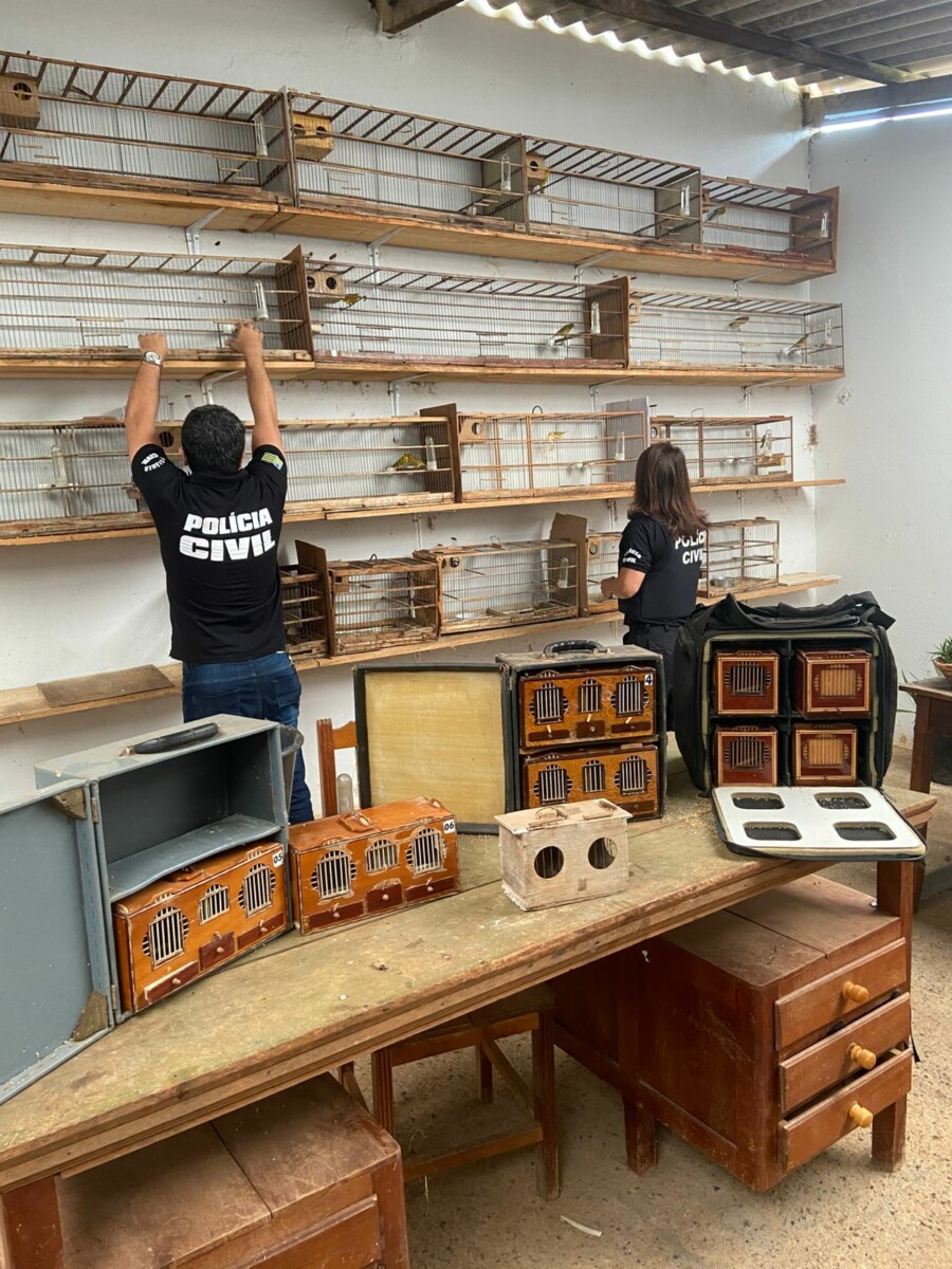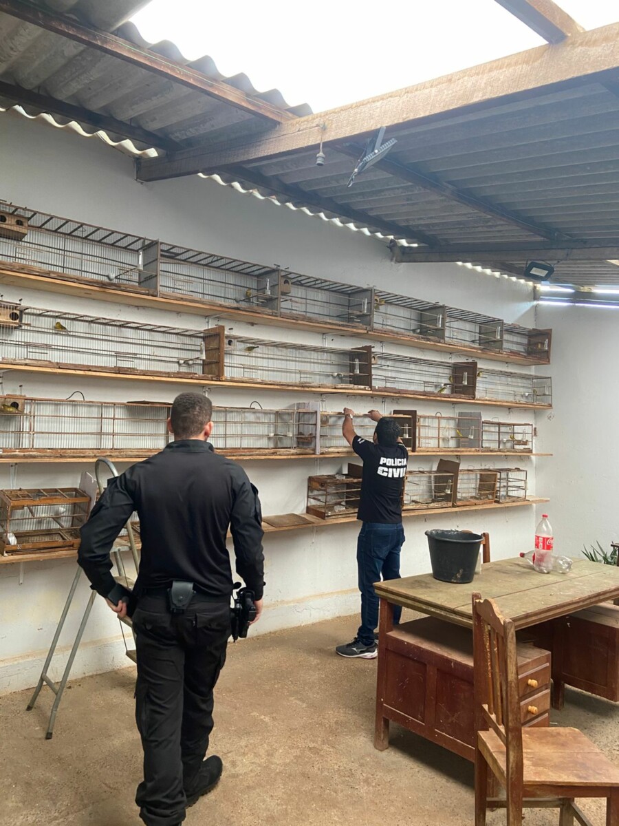 Nessa sexta, foram cumpridos mandados de busca e apreensão nas residências de investigados, a fim de coletar mais provas. Durante a operação, na residência de um dos investigados, foram encontradas 19 munições calibre .22 e porções de maconha, resultando na prisão em flagrante de um homem de 61 anos. Na casa do outro investigado, foram localizados diversos animais silvestres mantidos em cativeiro em condições insalubres, incluindo 33 canários-da-terra, uma arara-canindé e três jabutis. Além disso, na residência também foram encontrados pés de maconha plantados no quintal. Os animais foram encaminhados ao órgão ambiental competente, onde receberam os cuidados necessários de profissionais especializados.