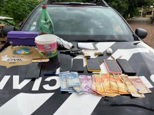 A Polícia Civil do Estado de Goiás, por meio do Grupo de Repressão a Narcóticos (Genarc) de São Luís de Montes Belos, cumpriu, no último dia 23 de dezembro, ordem judicial de busca e apreensão na cidade de Aurilândia, interior goiano. A diligência resultou na prisão de um indivíduo, bem como a apreensão de vários objetos ilícitos: arma de fogo calibre .38, drogas, insumos para acondicionamento de drogas, expressiva quantidade de dinheiro e aparelhos celulares.