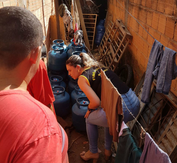 No local, foram encontrados 27 botijões de gás GLP vazios e cheios, todos acondicionados de forma precária nas áreas externa e interna da casa. Na casa onde os combustíveis eram armazenados, moram Carlos Ponciano, autuado em flagrante pela prática de crime contra a ordem econômica.