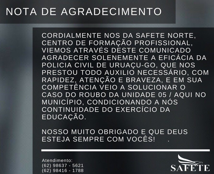 Ao dar continuidade às investigações sobre o furto praticado na empresa Sistema de Aprendizagem e Formação de Eletricista (Safete), os policiais civis da Delegacia de Polícia (DP) de Uruaçu averiguaram, no último sábado (18) que o autor do crime poderia ser o menor infrator M.A.A..
