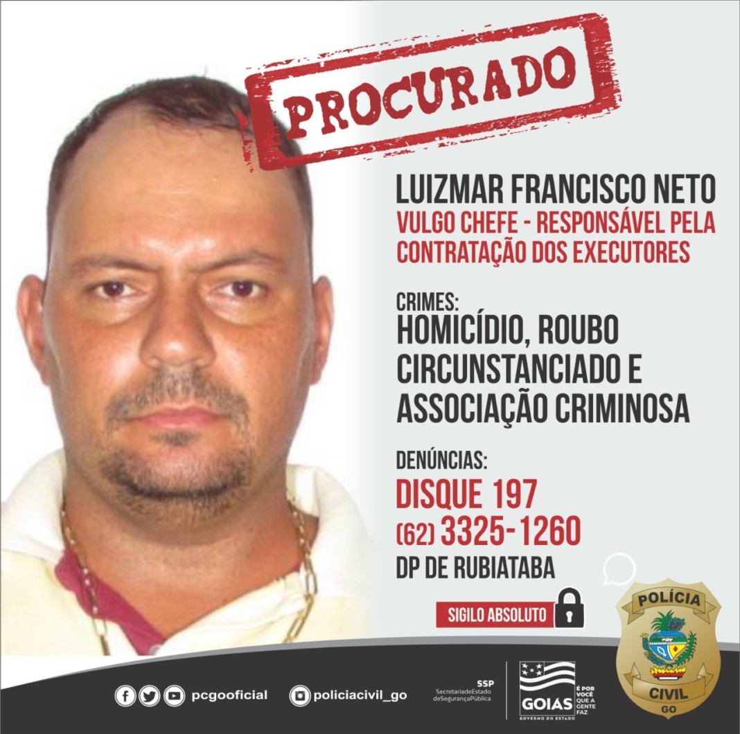 A Polícia Civil de Goiás, por meio da Delegacia de Polícia (DP) de Rubiataba, concluiu as investigações acerca dos fatos que levaram ao homicídio do cartorário Luiz Fernando Alves Chaves, 40 anos, ocorrido no dia 28 de dezembro de 2021, na referida cidade. O inquérito foi concluído na última sexta-feira, 7 de janeiro, e levou ao indiciamento de sete pessoas. Seis dos indiciados estão em prisão cautelar e um ainda está foragido – Luizmar Francisco Neto, vulgo Chefe, responsável pela contratação dos executores do crime, o qual segue sendo procurado. A maioria dos suspeitos foram presos ainda em flagrante, na data do crime.