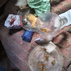 O entorno da residência também apresentava sinais de descuido, como mato alto e falta de limpeza.