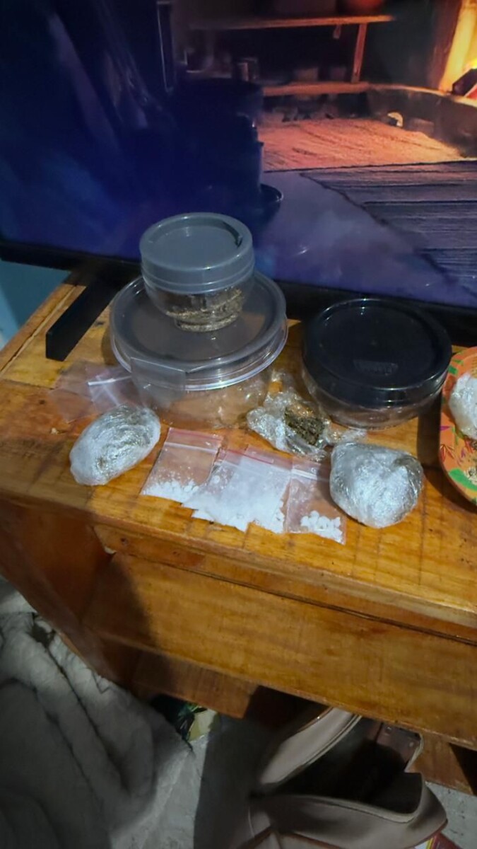 Durante o cumprimento de um dos mandados, ao adentrar em uma das residências alvo da operação, a equipe policial se deparou com uma situação de flagrante delito de tráfico de drogas. Porções de cocaína, maconha e outros objetos relacionados ao tráfico de drogas foram apreendidos, ocasião em que um homem foi preso em flagrante. A autora das facadas foi presa preventivamente e encontra-se à disposição da Justiça.