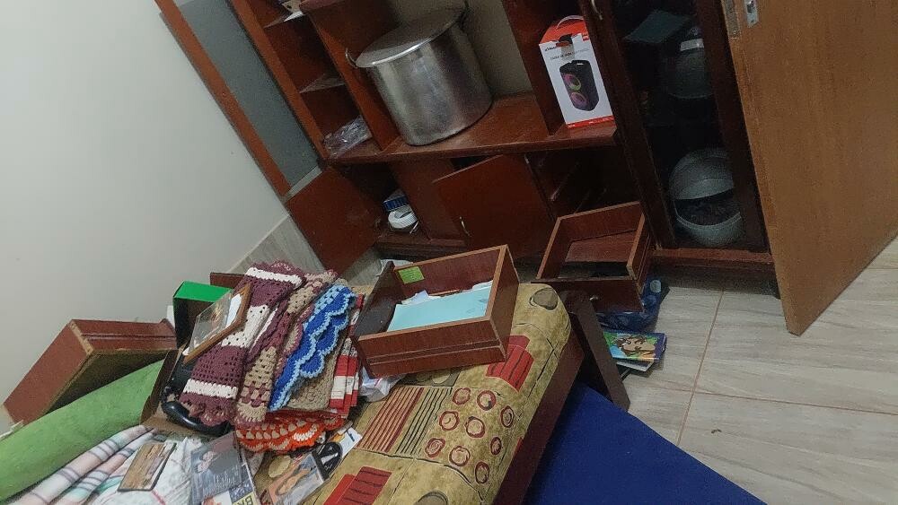 Durante a ação criminosa, um casal de idosos foi rendido por dois indivíduos armados, sendo um deles um adolescente de 17 anos. As vítimas foram amarradas, ameaçadas e agredidas, permanecendo sob o domínio dos autores por cerca de três horas, período em que a residência foi revirada à procura de dinheiro e objetos de valor, sendo subtraídos eletrônicos, utensílios domésticos e alimentos. As apurações indicam que o crime foi planejado com base em informações privilegiadas e que um dos executores possuía vínculo de parentesco com uma das vítimas.